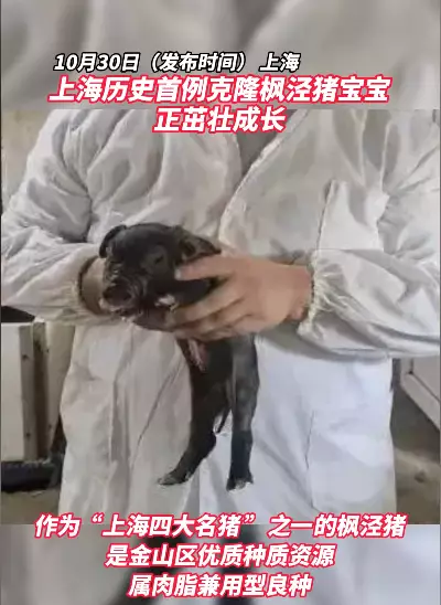 上海楓涇豬保种和開發利用有新進展,目前,歷史上首例克隆楓涇豬成功誕生,並正在茁壯成長。