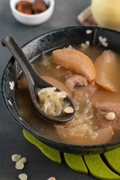 雪梨無花果南北杏豬腱湯:潤肺止咳、抗乾燥