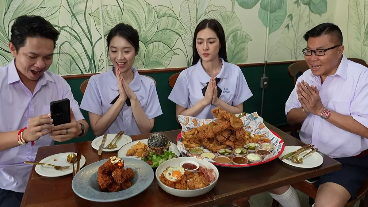 泰國旅遊達人胡慧冲繼續在節目中,為觀眾推介泰國最新食玩買。今晚「叉燒姐」鄺玲玲以初中學生妹look出場,制服誘惑充滿青春氣息,介紹一道名為「把幾火」炸雞。特點是炸雞淋上火酒後著火,效果就如「火焰雪糕」,色香味俱全。