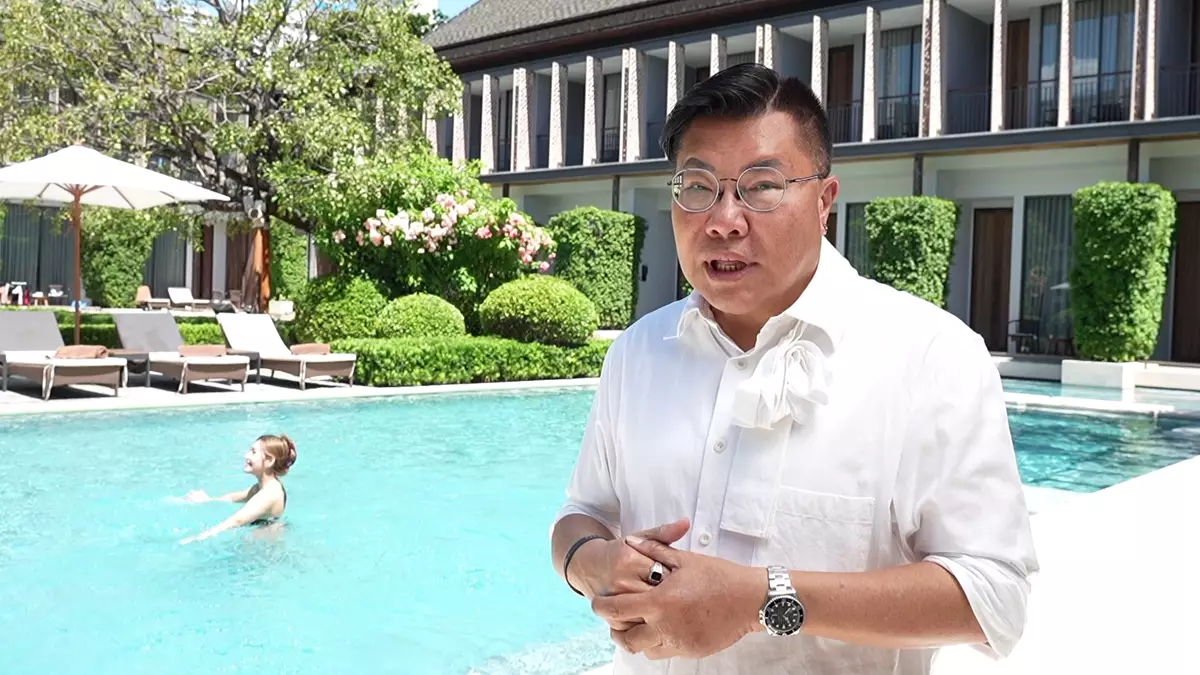 胡慧冲同冬蔭表妹介紹鬧市中的池畔酒店。