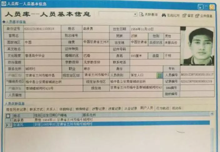 警方形容兇手孤僻不合群,做事極有耐心,並且具有非常明顯的雙重性人格,做事隱蔽性極強。為了追捕疑兇,警方為白銀市區所有男性居民,錄入指紋、抽血驗DNA,但查無此人。原來高承勇戶籍所在的蘭州農村,因為排查困難,當時並沒有錄入指紋。直到近期,警方在海量信息中找到與高承勇相關的關鍵信息,並提取他的指紋和DNA,才確認他的疑兇身分。