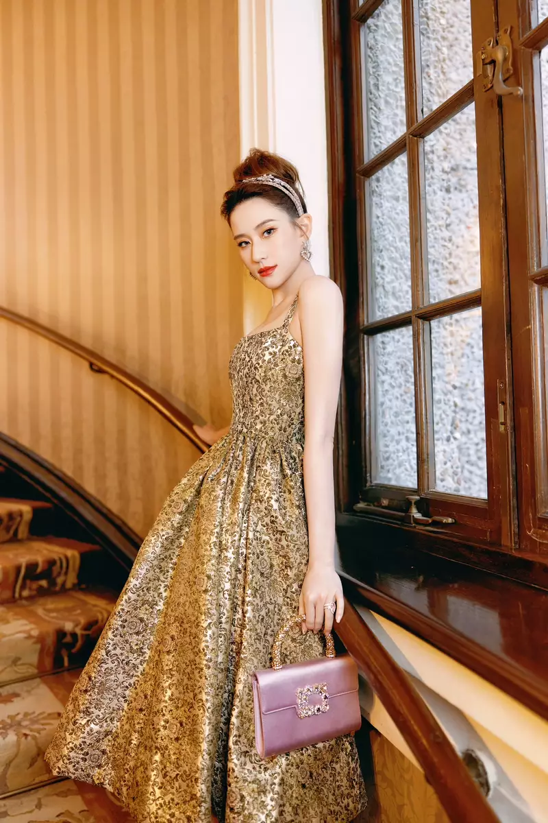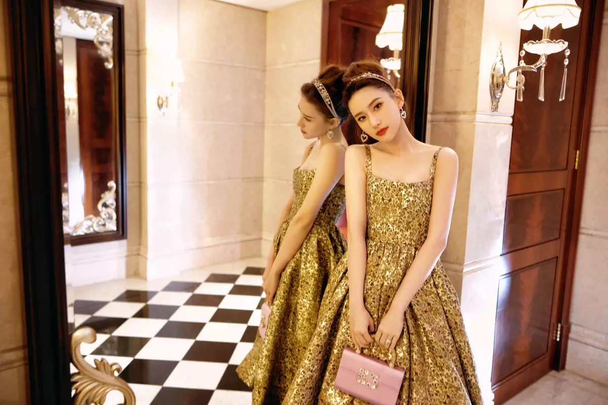 何超蓮在社交平台貼分享出席品牌活動的照片,可見她身穿金色吊帶裙搭配金色頭箍、精緻的妝容,十足公主,貴氣又優雅。她又分享了兩張和老公竇驍的合照,其中一張更重現婚禮拗腰錫錫的畫面,二人情深款款互望,非常甜蜜!