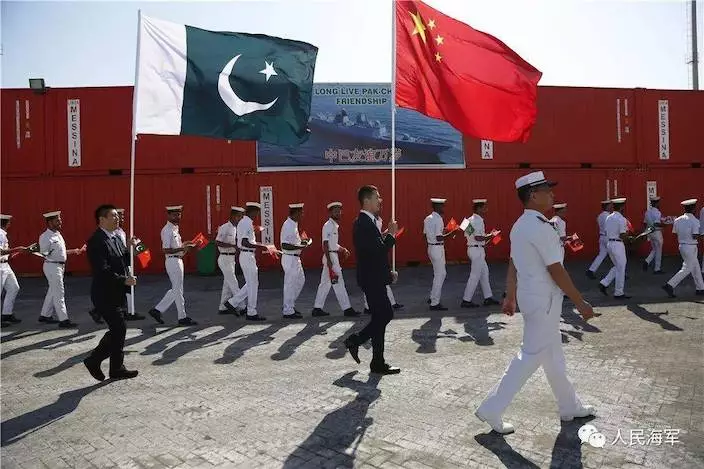 中國海軍抵達巴基斯坦,巴海軍伊姆蘭準將到場迎接。 人民海軍圖片