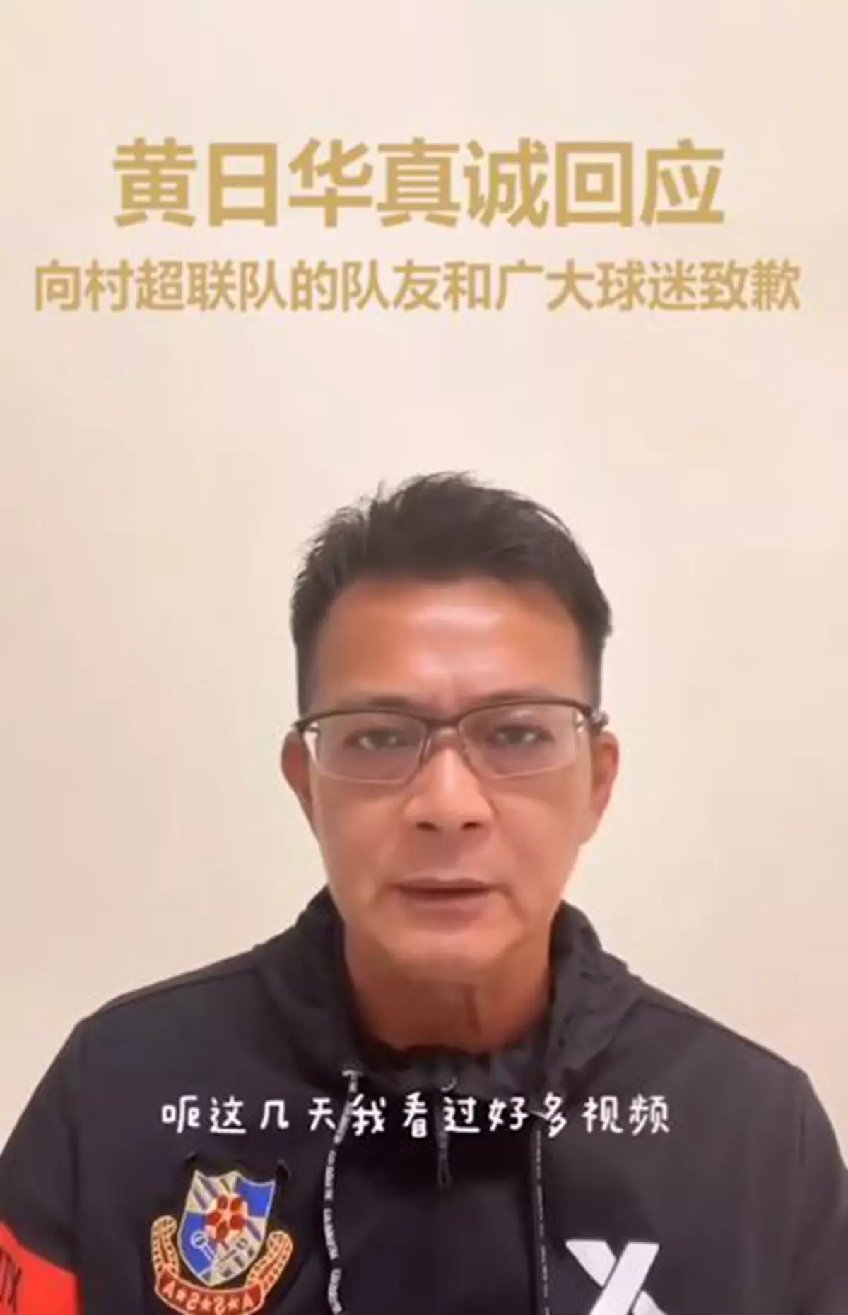 華哥在視頻中數度鞠躬道歉:「前幾天我們邀請了榕江村超聯隊到香港跟我們香港明星足球隊來一場足球文化交流,本來整個活動都非常完美,可是給我一個人的不理智行為給破壞了,帶來了一點遺憾,這幾天我看過好多視頻,也看到所有網友對我的批評,我都一一接收,因為經過自我反省之後,我覺得我在控制情緒方面真的做得不好,還有很大改善空間,我覺得我是做錯了,所以在這裏我要跟村超聯隊的球員們、貴州的朋友;全國的球迷、所有網友說聲抱歉,對不起我錯了……對不起。我是非常喜歡踢球的,在這裏我保證,我不容許我自己再有這樣的情況發生,希望未來的日子你們可以在球場上看到一個全新的黃日華,也希望經過我們共同的努力,可以把我們國家、香港的足球運動繼續發揚光大,祝大家身體健康,謝謝。」