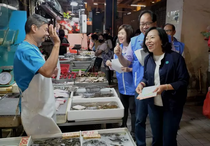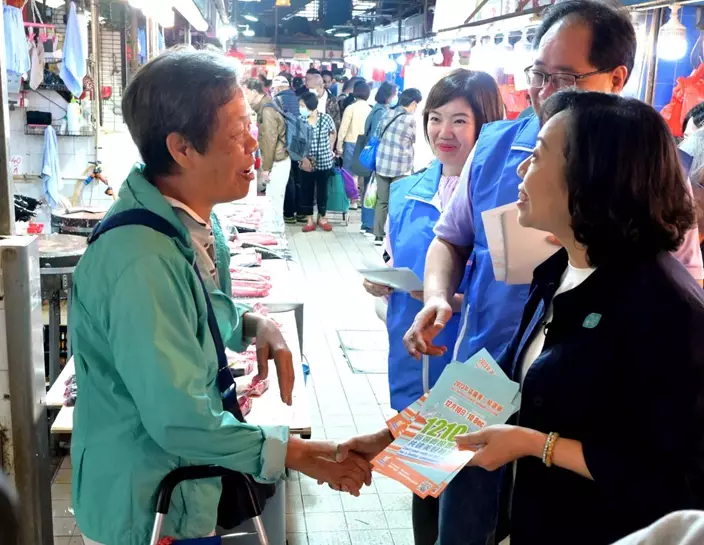 區議會選舉下月10日舉行。民政及青年事務局局長麥美娟與九龍城關愛隊14日到街市接觸選民,宣傳區選。