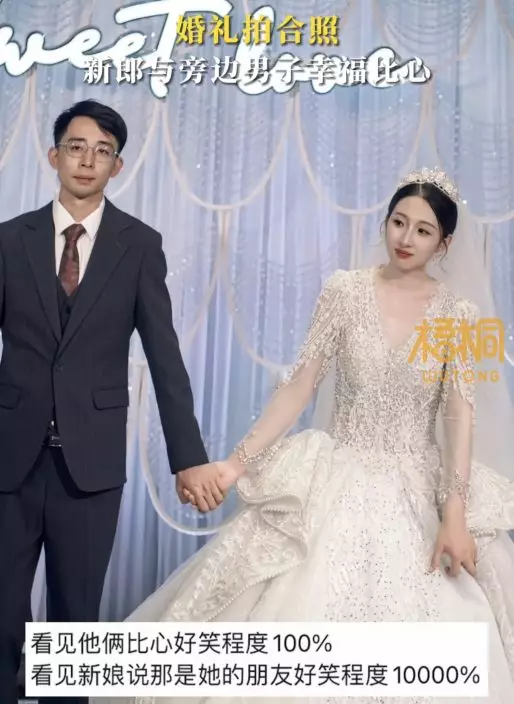 內地新娘翻看婚禮照片,意外發現老公竟和好友偷比心,而見到自己神情更感好笑。
