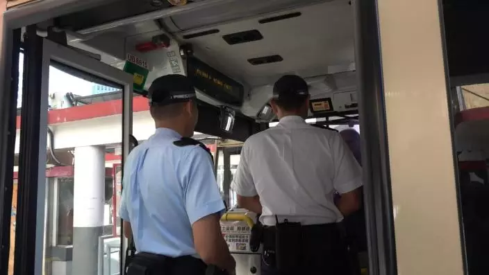 上午11時,一名高級督察和一名警長巡邏至尖沙咀碼頭後,登上九巴6號線,開始「巴士巡邏」。