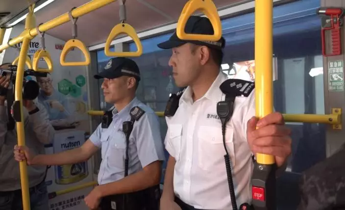 警隊西九總區15日起推出試行計劃,不定時安排軍裝警員登上區內公共巴士巡邏。