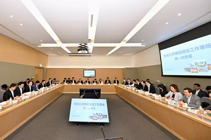 保安局局長鄧炳強與深圳市人民政府副市長王守睿共同主持「港深口岸規劃建設工作專班」會議。鄧表示,將推進一系列提升口岸通關能力和便利化措施。