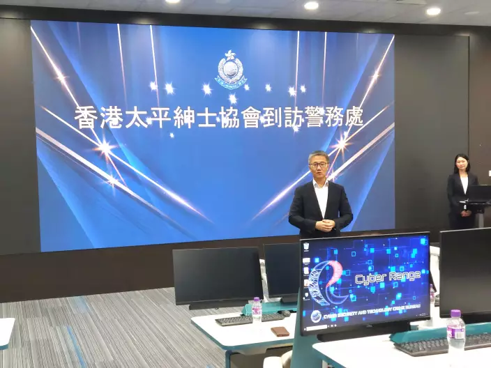 警務處長蕭澤頤向協會介紹警方防騙策略和設施。
