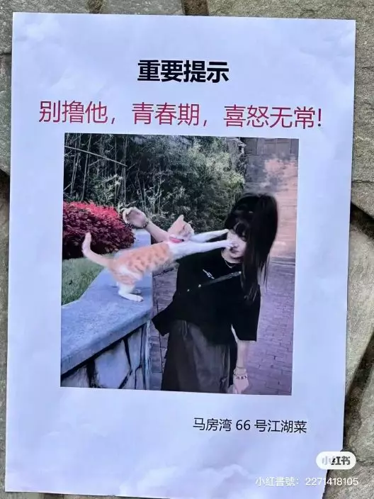 日前,內地一名女子「@小棠慢吞吞」在小紅書上曬圖分享了流浪小貓看見自己被「通緝」的經歷,其逗趣模樣萌翻一眾網友。她表示住宅社區內有一隻流浪橘貓,由於體型瘦弱且長得十分可愛,給人一種無害的感覺,因而吸引了許多居民前來撫摸。然而卻不曾想,這隻還處於「青春期」的小貓經常喜怒無常對人進行「攻擊」。對此,小區居民對貓貓發布了通緝令。