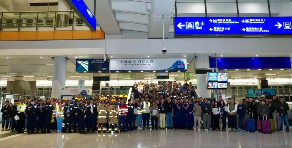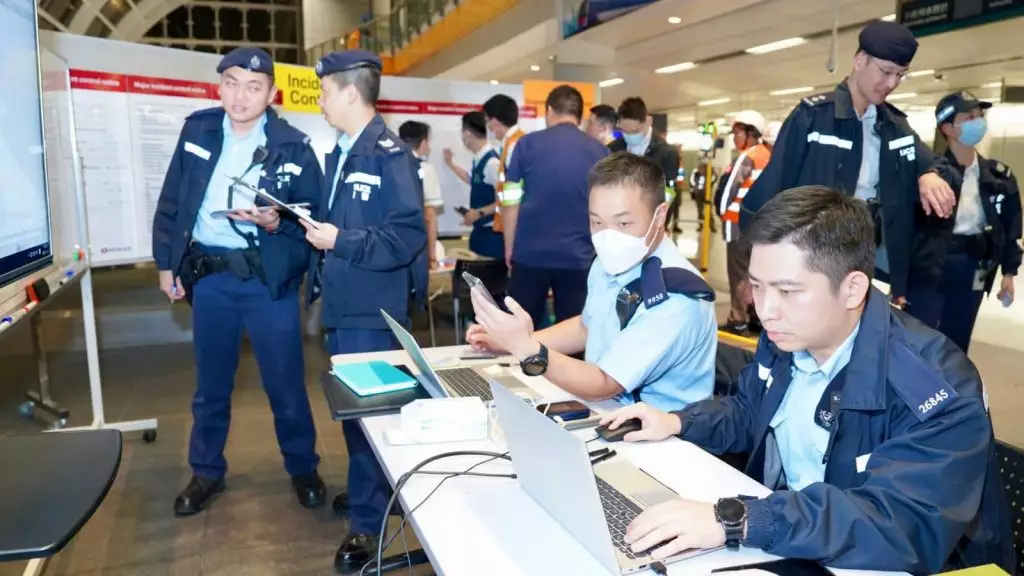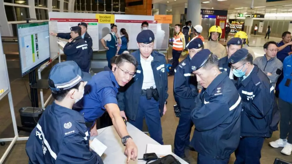 警方凌晨聯同消防處、機管局、醫管局、港鐵、民安隊及聖約翰救傷隊,進行跨部門重大事故演習,模擬一輛機場快綫列車受嚴重事故影響,導致大量傷者需要即時撤離及救援。