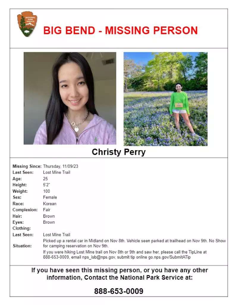 A weeklong search for 25-year-old Christy Perry ended successfully Friday, according to Big Bend rangers. Perry arrived at the 1,200-square-mile national park on Nov. 7 but didn't show for her camping reservation. https://t.co/7UOD8GZoid pic.twitter.com/YajEkbq9BE