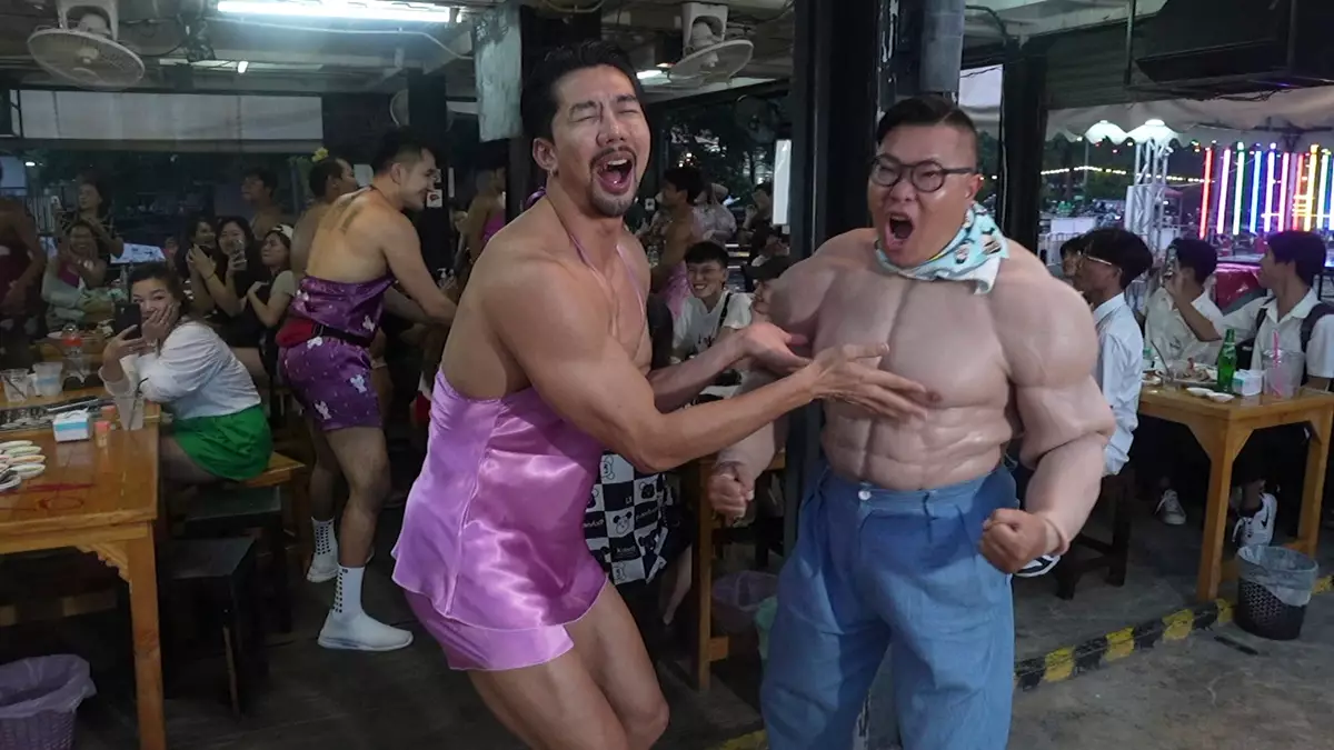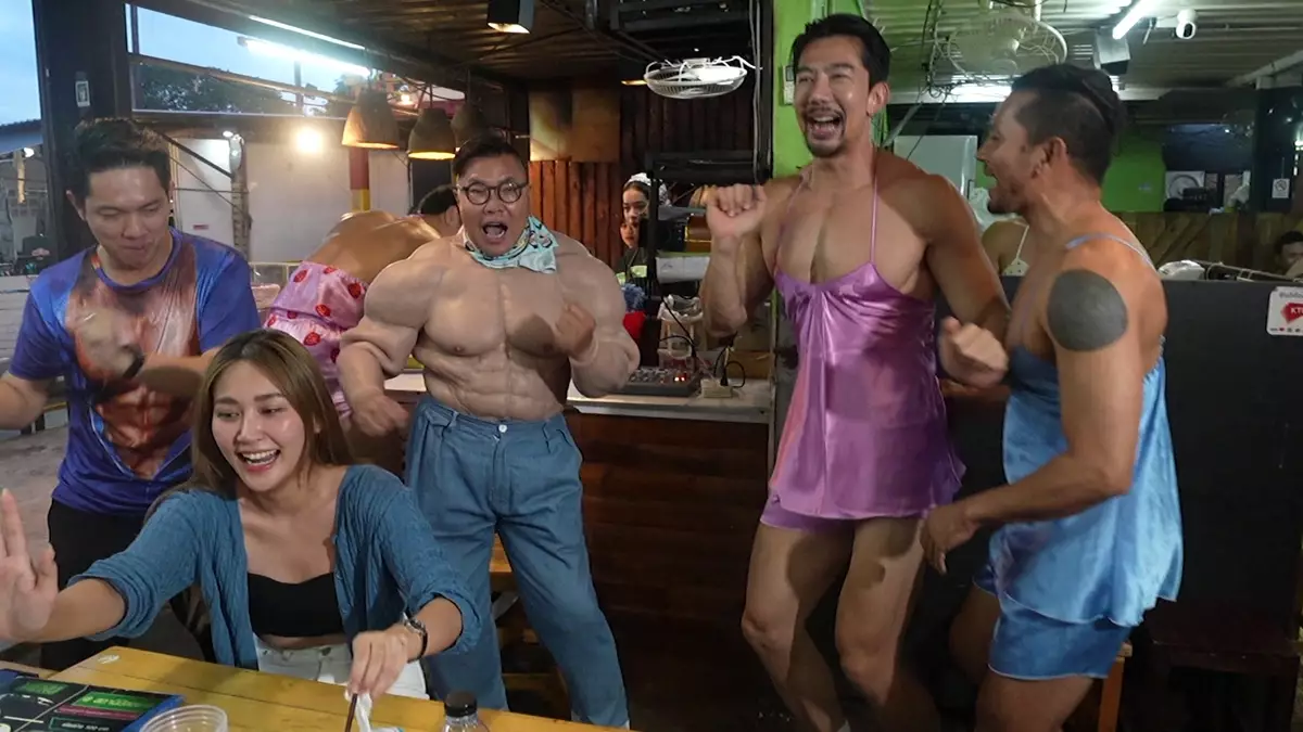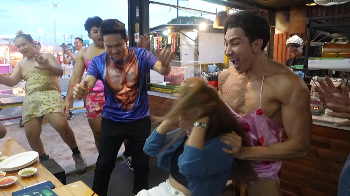 冬蔭表妹作為家族的性感擔當,繼上星期被猩猩狼吻胸襲之後,今次再度上陣,任由貌似韓星河正宇的猛男,在她身後猛搖如跳辣身舞,加上少許不文動作,冬蔭表妹雖然被搖到暈頭轉向,依然非常受落玩得投入。事後泰版河正宇向冬蔭表妹合什致意,表示只為製造氣氛。事實上Out Out餐廳的5位猛男台柱,個個模特兒身型,近6呎身高、逾40吋的胸肌,加上唏噓的鬚根,顯得特別粗獷,難怪大受一班女仕歡迎。他們近日更紅到馬來西亞,被邀請到當地表演。
