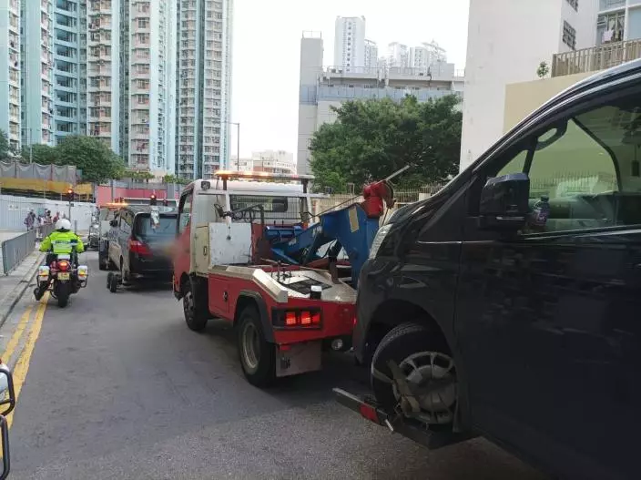 警方東九龍總區打擊違例泊車 共發1242張牛肉乾拖走45架車