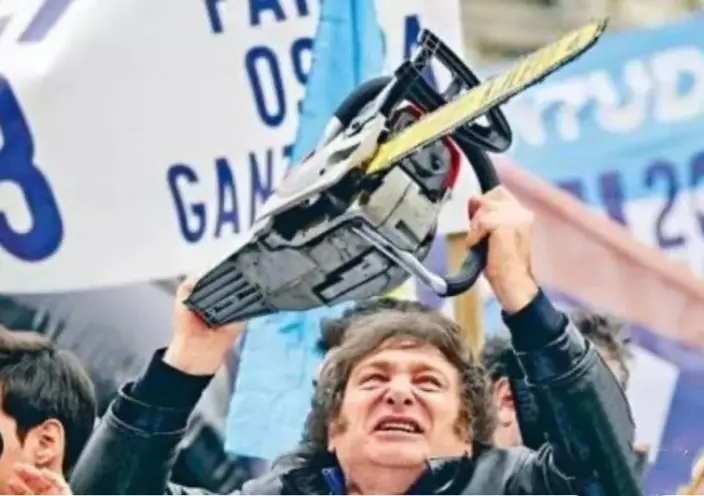 電鋸是他的競選工具,他說他要鋸掉阿根廷一切令人厭倦的政府部門。