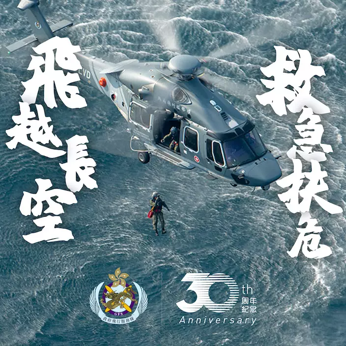 政府為慶祝飛行服務隊成立30週年,保安局在社交平台推出有獎問答遊戲,答中問題可獲得禮品。