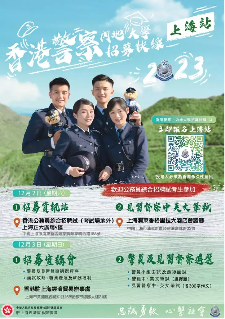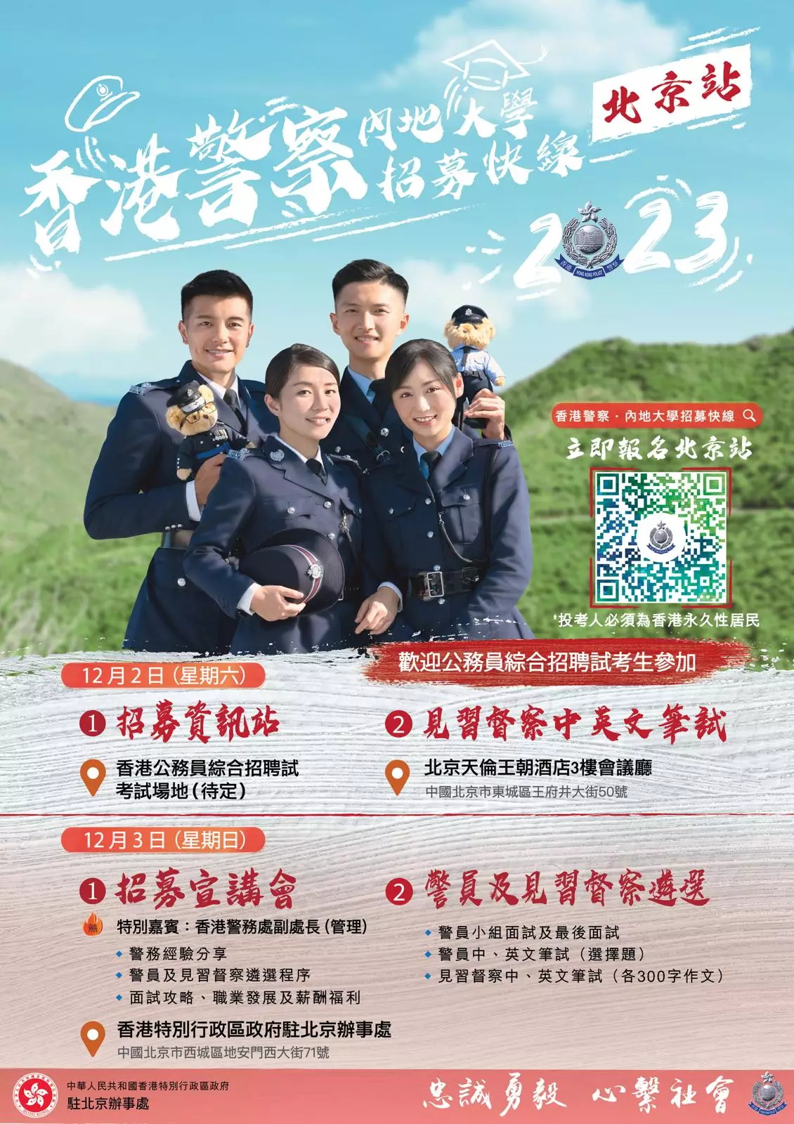 警方在社交網站表示,在警察招募方面,香港警方相繼推出不同招募計劃,以吸引質素卓越並具備作為警務人員所需才能的香港特別行政區永久性居民投考。同時為便利於內地就學的香港學生,香港警方不時到訪內地的大學舉行招募活動,亦已計劃於12月2及3日在北京和上海舉辦招募宣講會,到時候更會即場進行警察遴選程序,詳情請見: