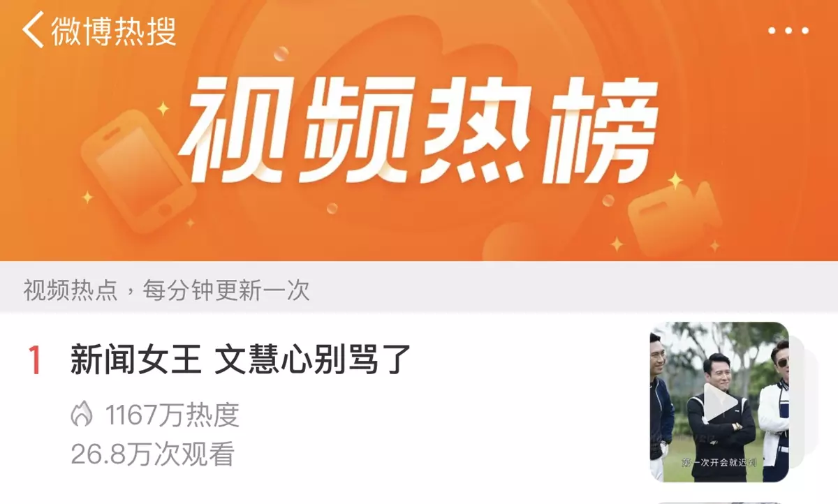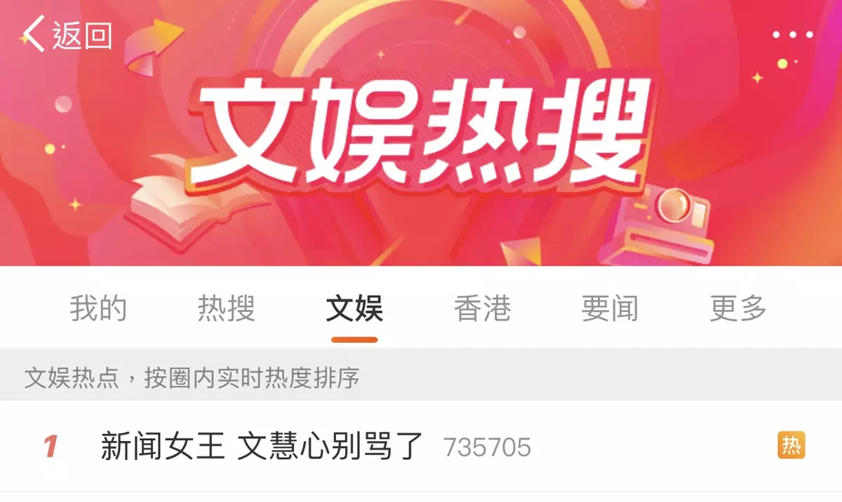 「新聞女王 文慧心別罵了」登微博文娛及視頻熱搜榜首。