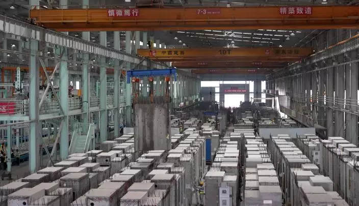 在生產車間內,MiC預製件逐列逐個排開。巴士的報記者攝