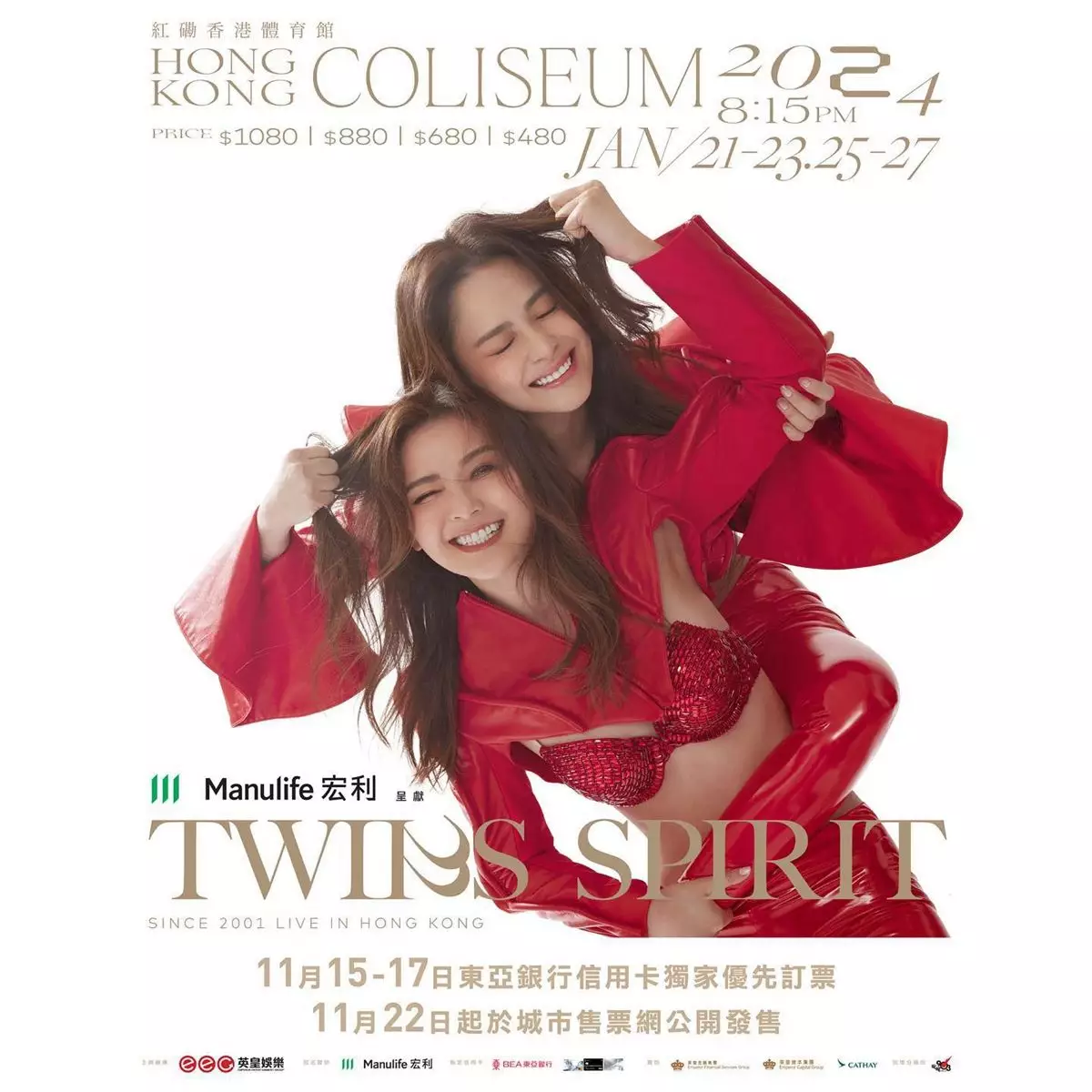 Twins一連八場的紅館show將於明年一月舉行,門票於11月22日公開發售。