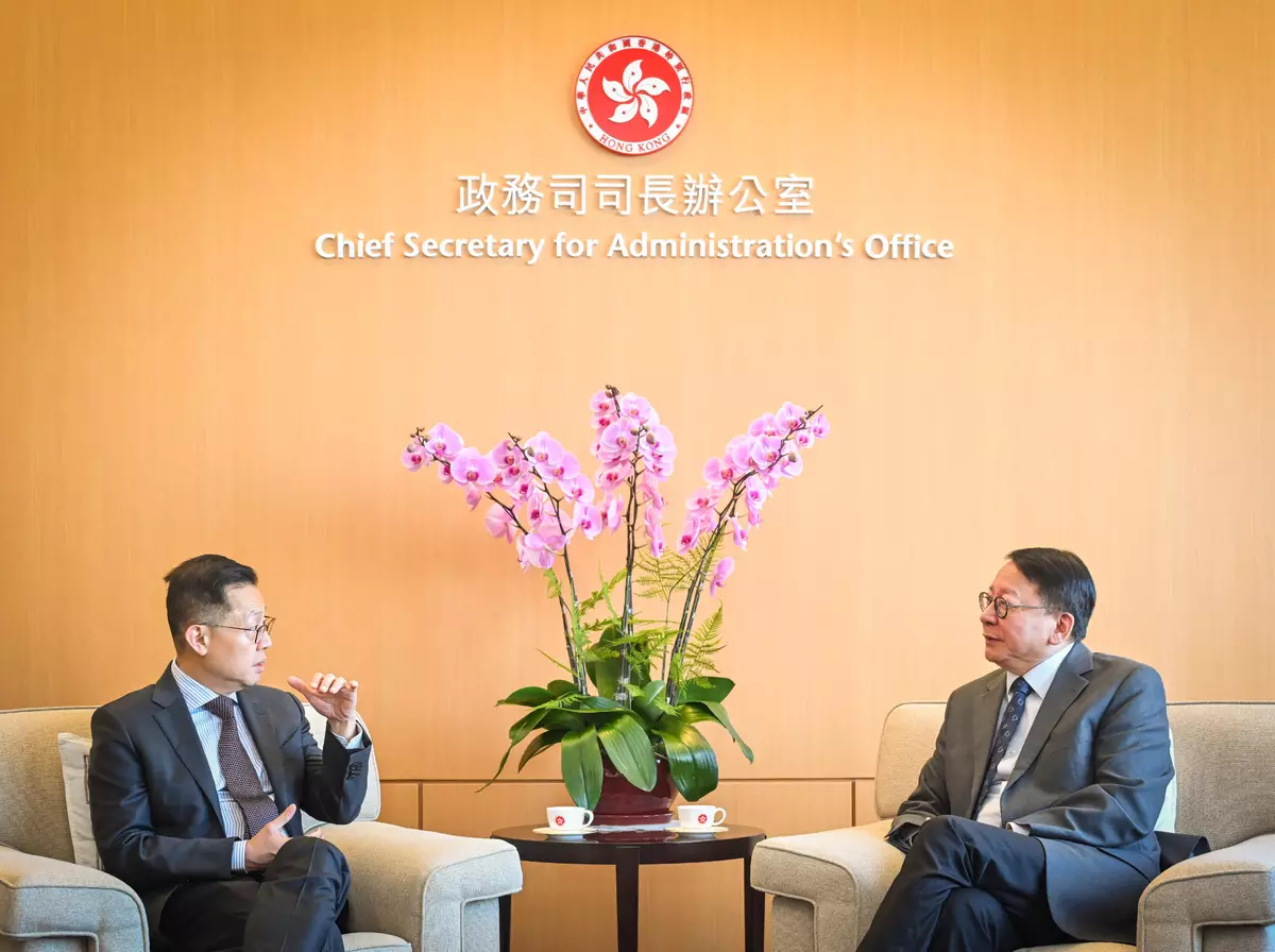 來自新加坡的交流計劃代表團早上與政務司司長陳國基會面,陳國基歡迎新加坡常任秘書長代表團訪港,表示隨著香港與新加坡走出疫情、全面復常,兩地交流計劃迅即有序恢復,彰顯兩地政府之間的堅實合作關係。會面期間,雙方亦就構建關愛共融社會的政策措施,交流意見和經驗。