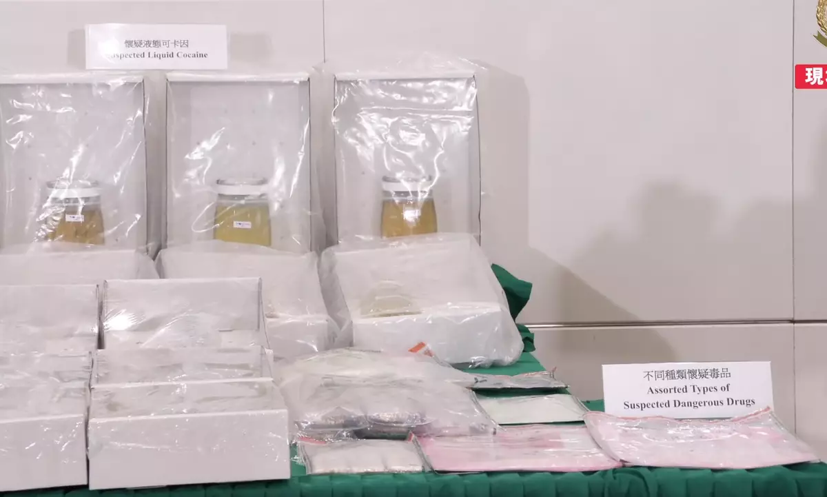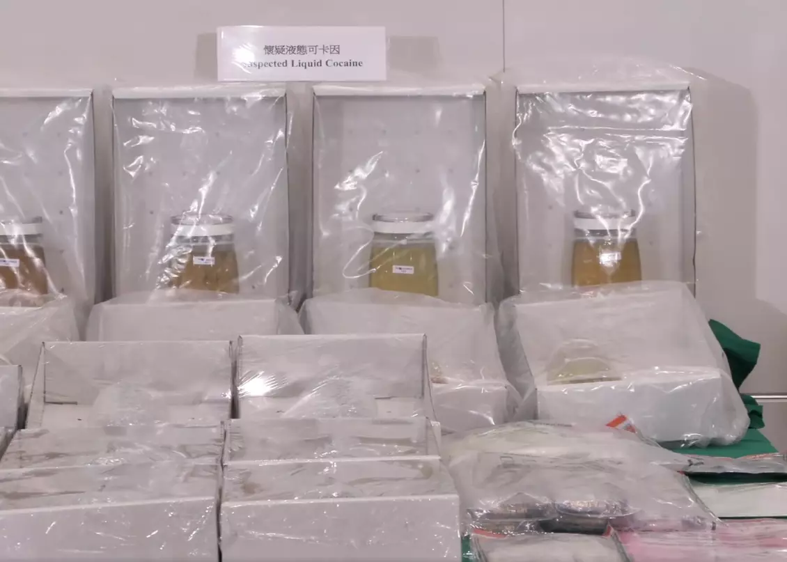 海關於機場及市內檢獲24公斤液態可卡因及其他不同種類毒品,市值共3000萬元,拘捕4人。