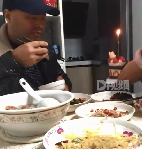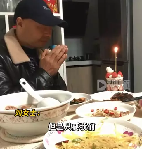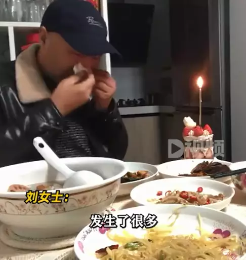 影片中可見,劉女士的妹妹一邊唱著生日快樂歌,一邊拿著一個草莓蛋糕走進爸爸身前,蛋糕上插著一根蠟燭。爸爸當時正在認真吃飯,不過在聽到女兒的歌聲,並看到蛋糕後,他先是一愣,接著眉頭緊皺,下一秒眼眶不禁湧出淚水,隨後他雙手掩面,還不斷地擦拭淚水。