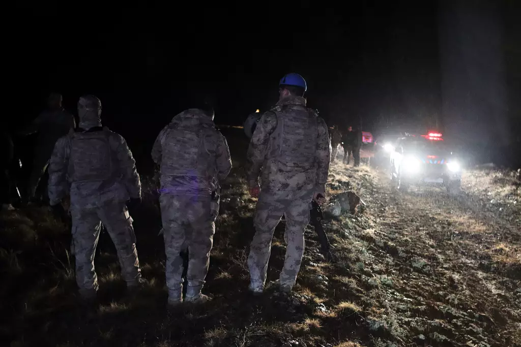 土耳其發生墜機事故,機上的利比亞總參謀長哈達德及其他4人身亡。圖為軍隊在搜尋飛機遺骸。AP圖片