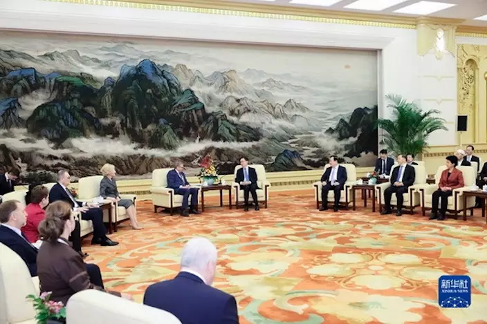 韓正在北京集體會見中俄友好、和平與發展委員會第十四次全體會議雙方與會代表。 新華社圖片