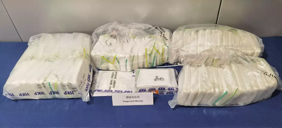 警方表示,根據情報及經調查後,於前日(28日)進行反毒品行動,突擊搜查一個位於粉嶺皇后山邨的公屋單位及一個位於葵涌的工業大廈單位,檢獲共20.65公斤懷疑海洛英,市值約港幣1600萬,並以「販運危險藥物」罪拘捕一名14歲本地男童、一名72歲本地男子及一名48歲本地女子。