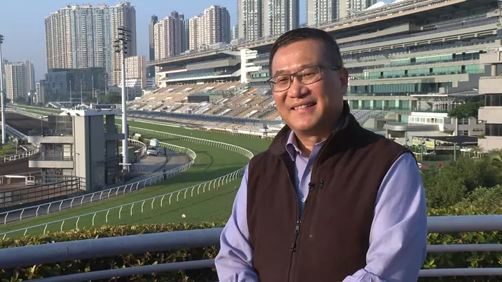檢疫馬房經理曾家偉介紹沙田馬場的檢疫馬房以及工作人員檢疫措施
