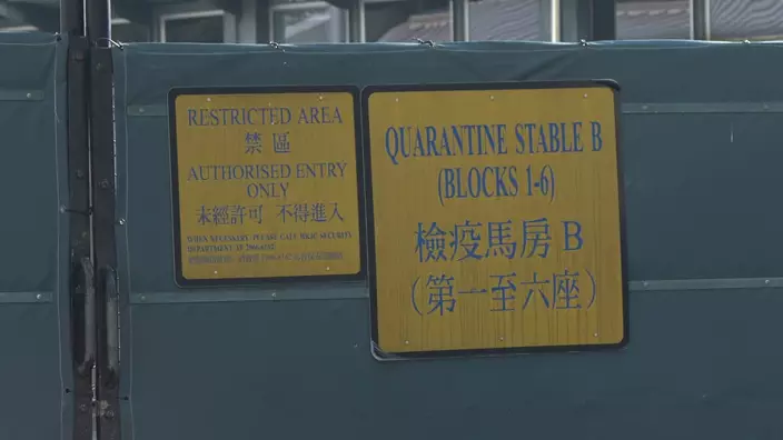 檢疫馬房經理曾家偉介紹沙田馬場的檢疫馬房面積約 2.2 萬平方米,設有 18 座檢疫馬房,共有 108 個馬格。馬房範圍設有行馬機、踱步國等訓練設施,進人檢疫馬房的人員必須遵循生物安全程序、例如手部、鞋類消毒,穿上保護衣。工作人員進出前必須洗澡,而進人檢疫馬房後同—天内不能進人本地馬匹的馬房。