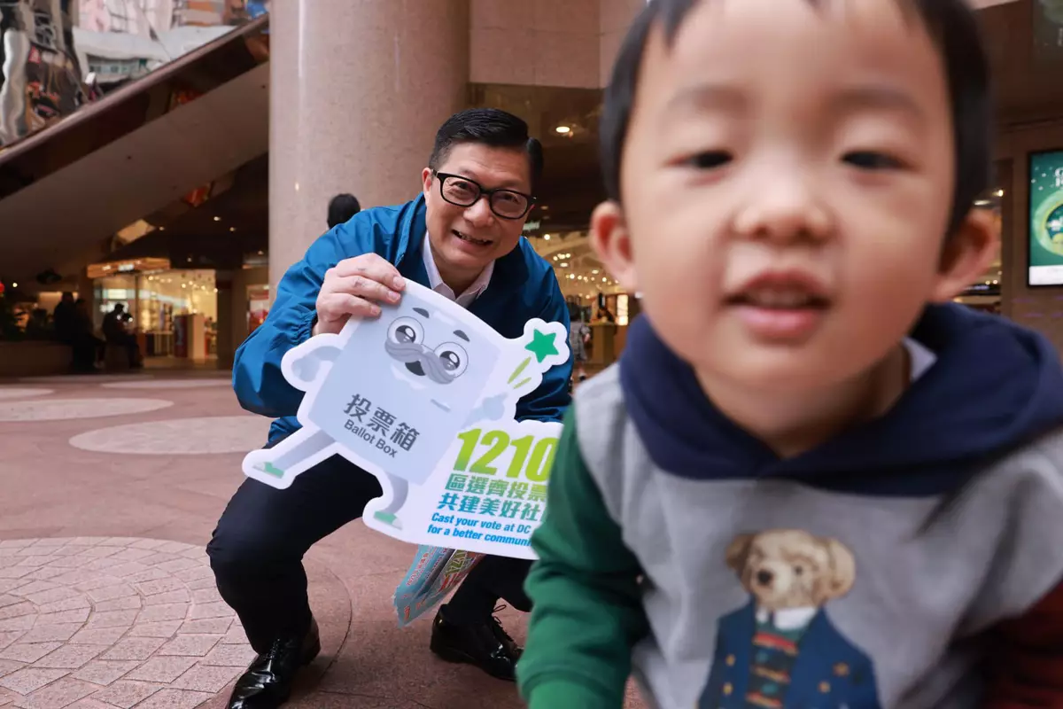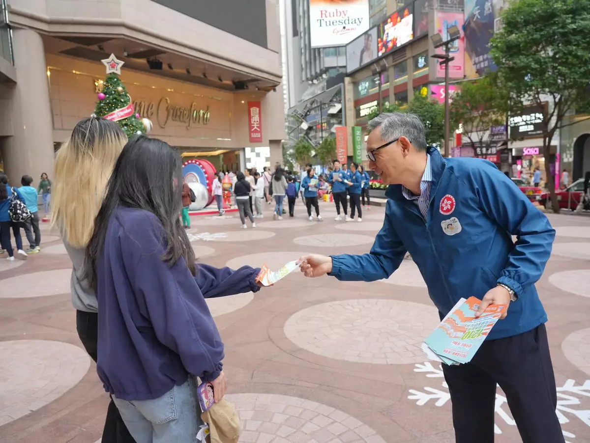 保安局局長鄧炳強率領保安局團隊到銅鑼灣向市民派發傳單,呼籲大家於12月10日區議會選舉當日,踴躍投票。