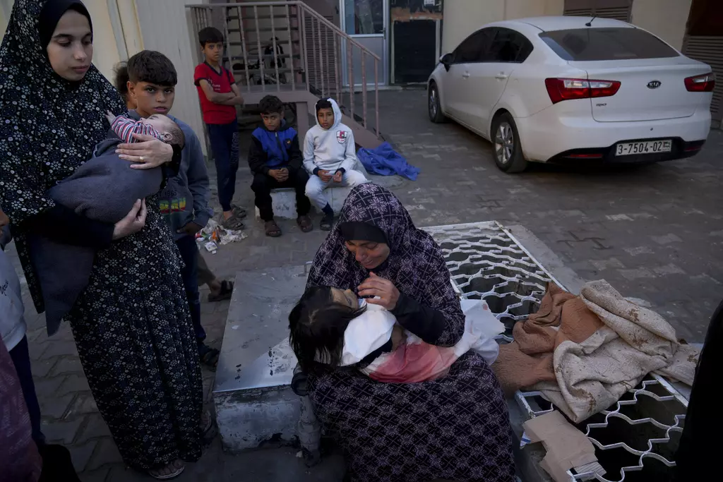 一位巴勒斯坦母親為在以色列空炸中喪生的女兒哭泣。(AP圖片)