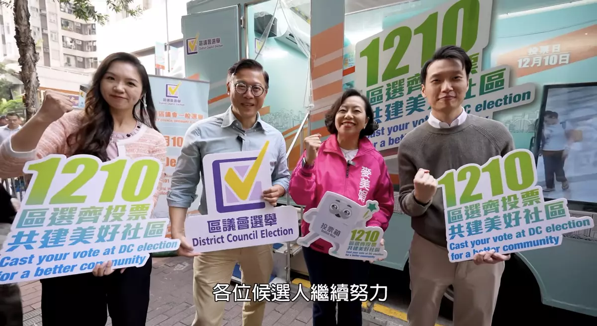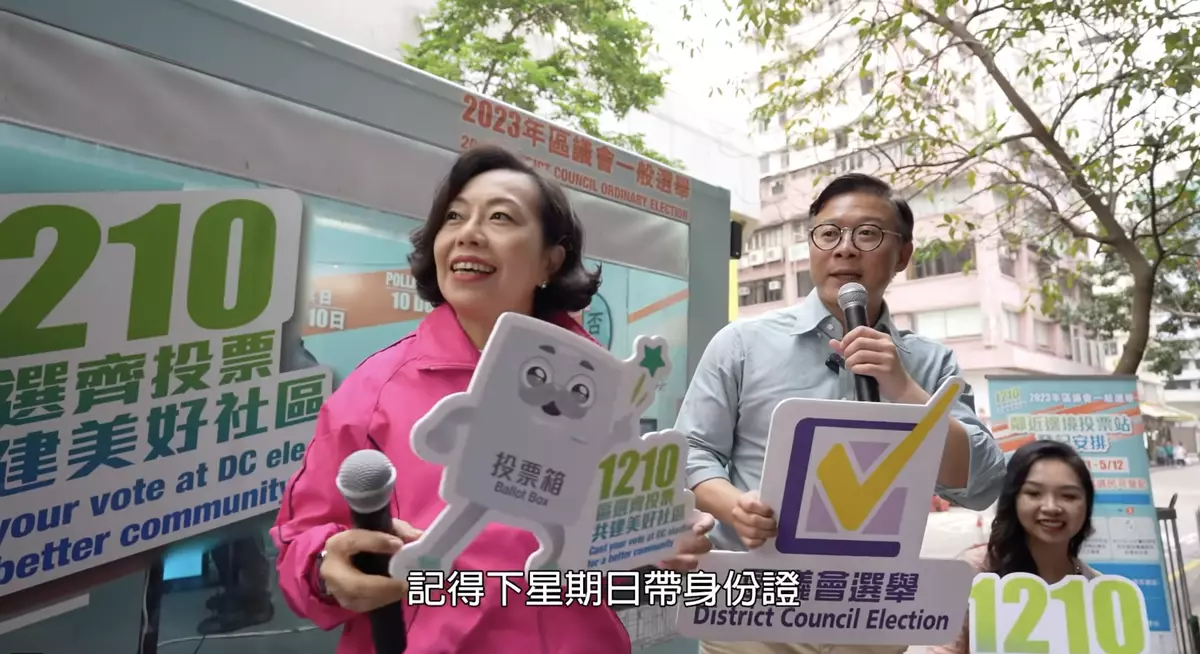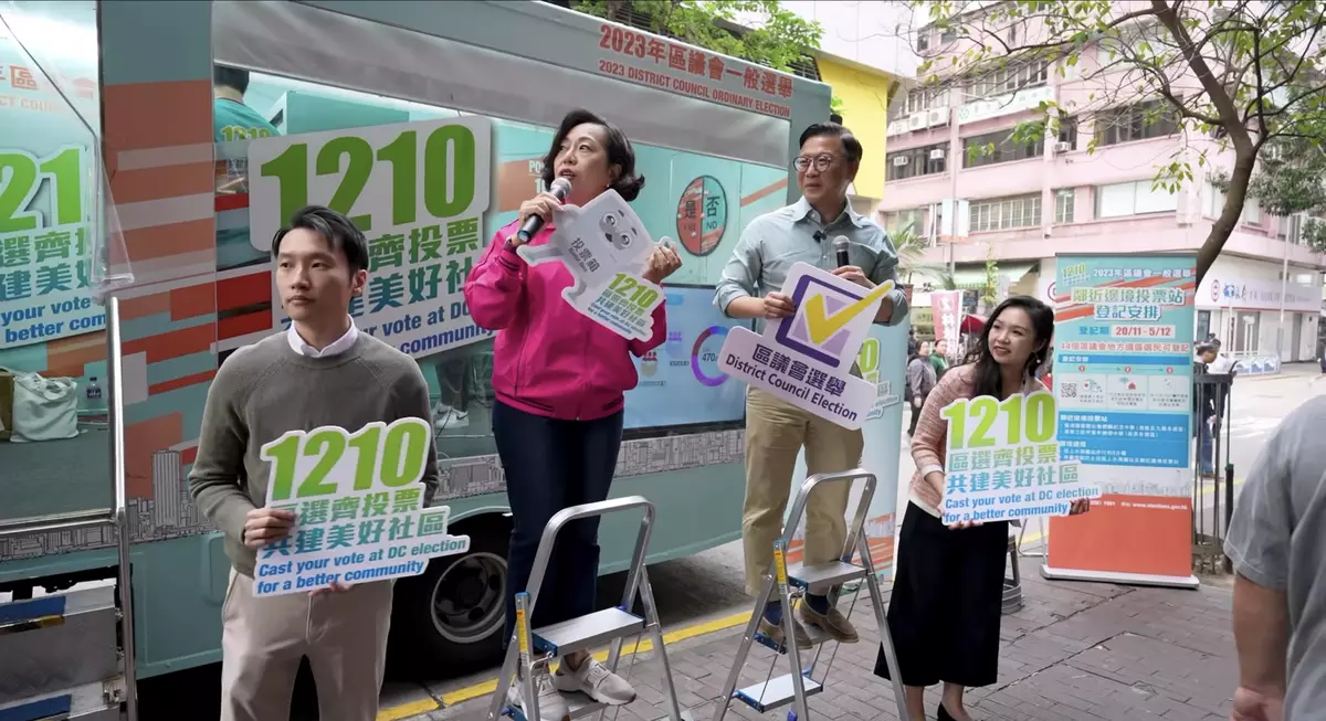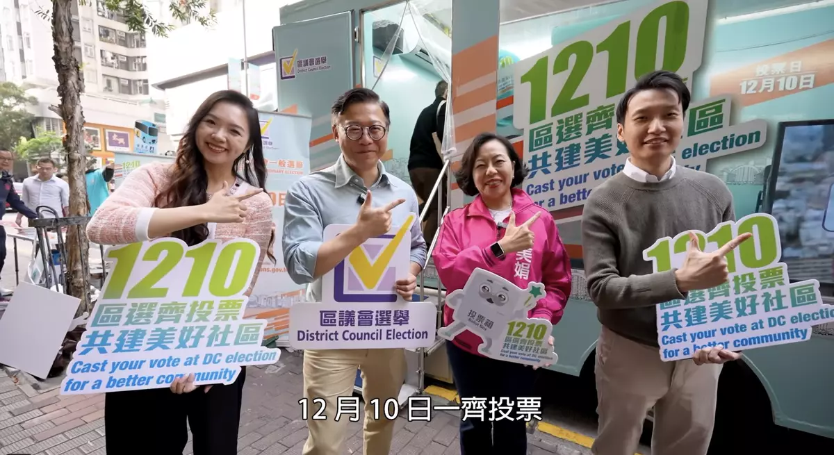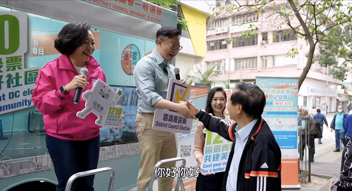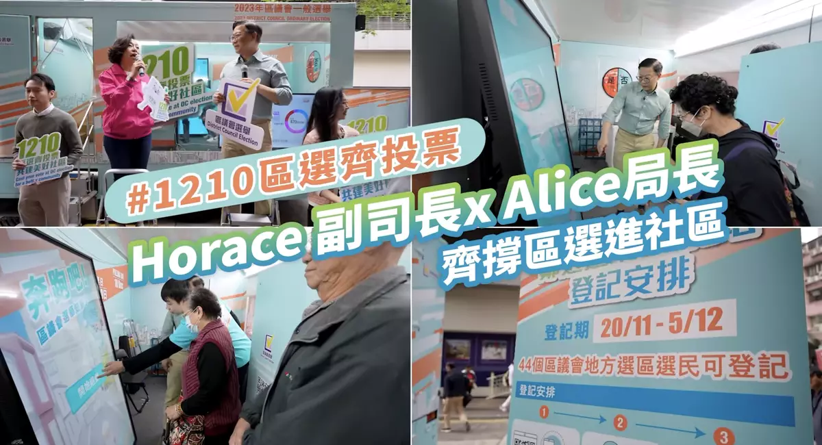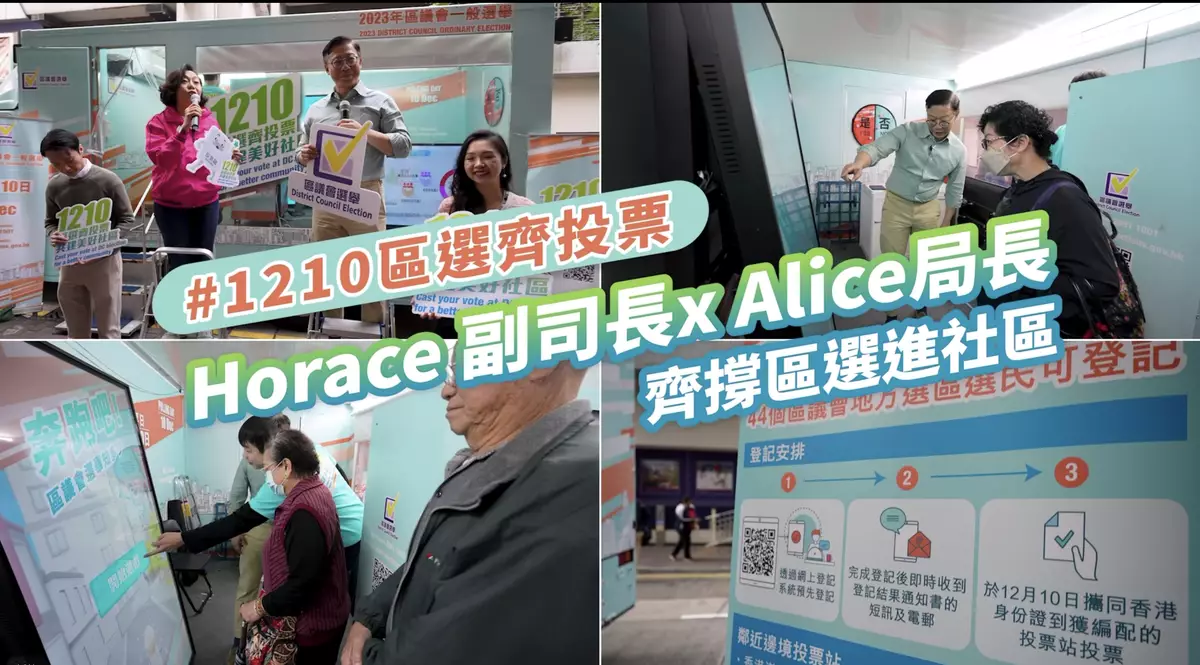 臨近區議會選舉日,選舉氣氛越來越熾熱。民政及青年事務局在社交網站表示,2日律政司副司長張國鈞聯同民政及青年事務局局長麥美娟一起來到香港仔「區選進社區」流動宣傳車,為下星期日的區選宣傳,呼籲市民投票 。