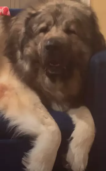 國外飼主養了一隻如同北極熊的高加索犬,然而牠性格卻極具反差,竟喜歡坐主人腿上賣萌撒嬌!