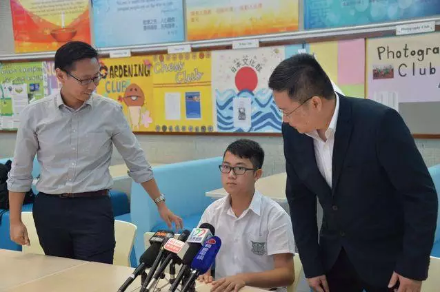 準備派發單張而被校方阻止的梁姓中三學生,下午在譚建勳和一名老師陪同下會見傳媒時表示,與校方的會面歷時3至4小時,主要商討「關注組」的未來方向,另有提及派傳單的方式等。他表示校方並無向他施壓,會面氣氛亦良好。而校方不容許他們派傳單,是擔心會被持激烈意見的人辱罵甚至追打。