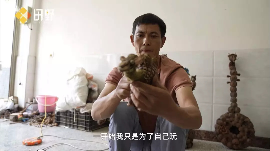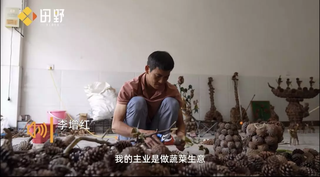 雲南紅河一名80後男子李增紅最近以其獨特的手工藝品引起了網友們的廣泛關注。據悉,李增紅主業是做蔬菜生意,松果手工是自己在家閒暇之際所發掘的業餘愛好,他指出自己做松果手工的起因是他認為松果具有一種自然美,因而便開始琢磨做松果花瓶、花籃之類的,之後才開始研究生肖、動物等等。