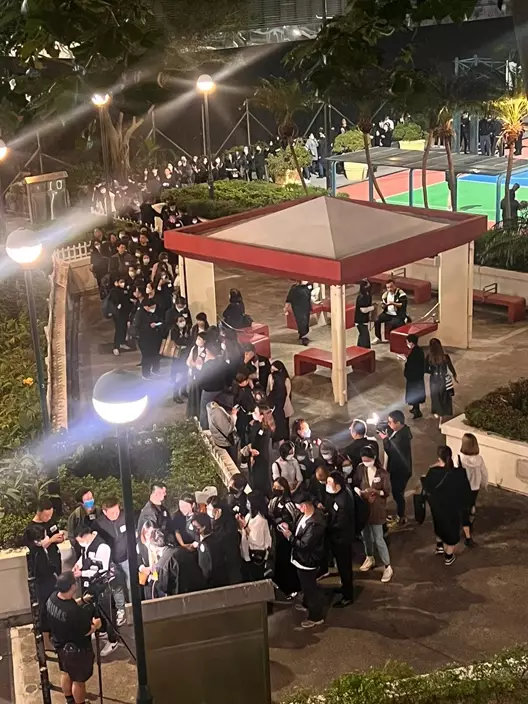 近400名粉絲登記弔唁,有秩序在殯儀館對出的公園排隊等待(本網記者攝)