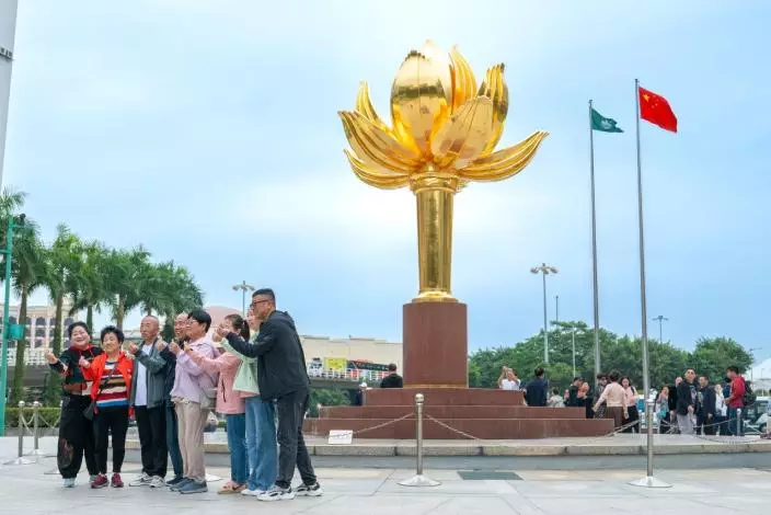 座落在金蓮花廣場的《盛世蓮花》雕塑設立已近二十四年。早前,在中聯辦支持及協調下,市政署聯繫並安排雕塑原製作機構對雕塑飾面作整體維護翻新,進行了噴塗面漆、刷金箔膠、貼金箔、噴塗保護層等工序。