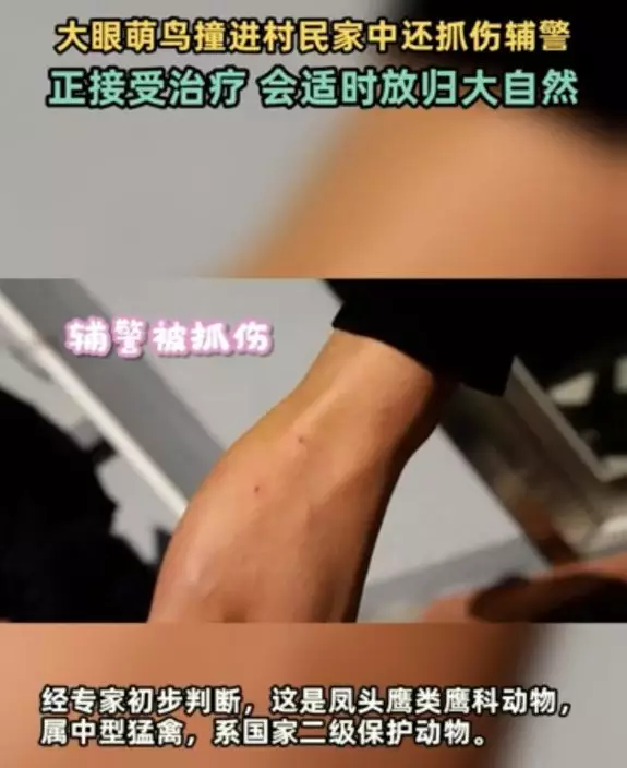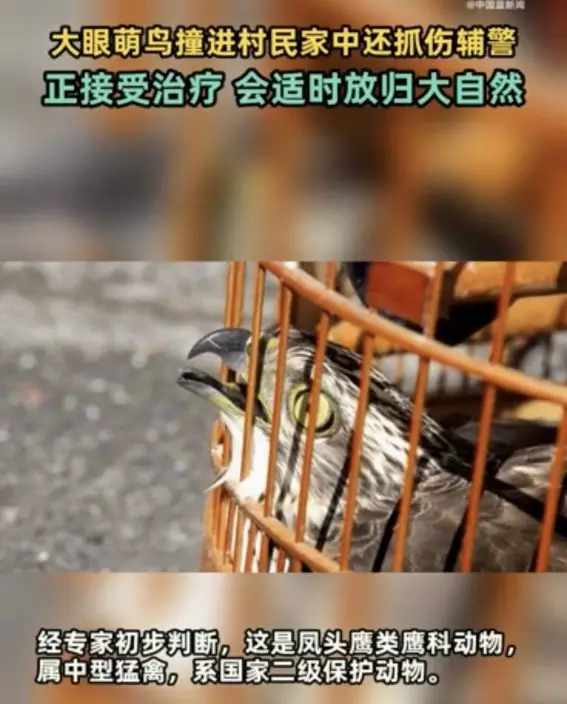 超萌的大眼雀仔受傷撞進村民家中,警方到場轉移卻被抓傷,事後專家鑒定其真實身份係...