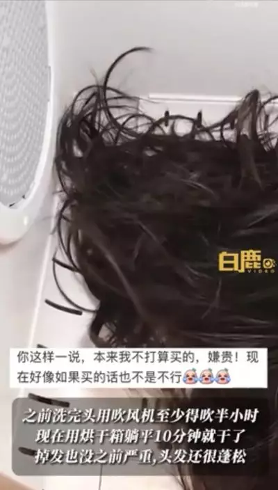 女子透露,平時洗完頭用吹風機吹乾頭髮至少需要半小時,然而現在使用烘乾箱,僅10分鐘便可完成。此外她只需要躺平讓其自動烘乾即可,既可解放雙手,也能節省不少時間。最重要的是她還減少了掉髮的問題,頭髮看起來也更加蓬松。她亦表示,她最初擔心烘乾箱可能會卡住頭髮,但實際使用後發現完全無此問題。與標準1200w功率的吹風機相比,這款寵物烘乾箱的功率僅為800w卻更為節能和高效。
