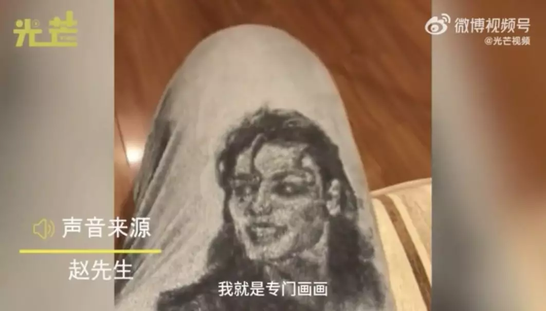 男子毛褲上繪畫出超逼真的美斯高比肖像,畫技超群獲網民讚賞:高手!