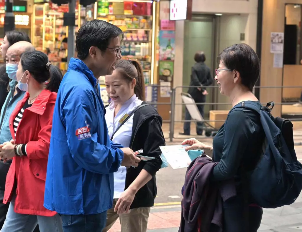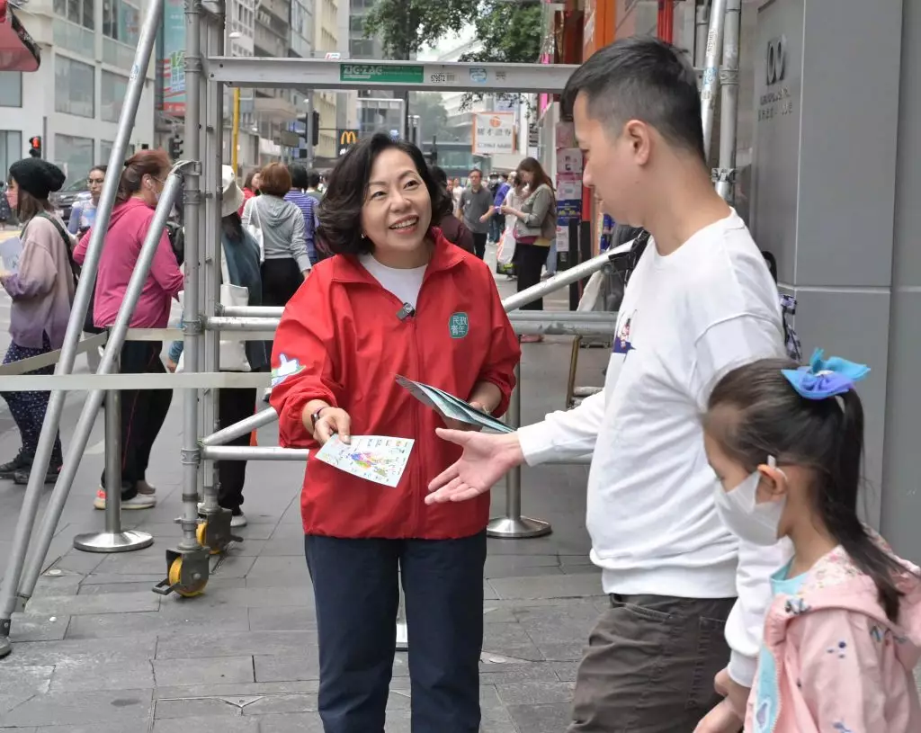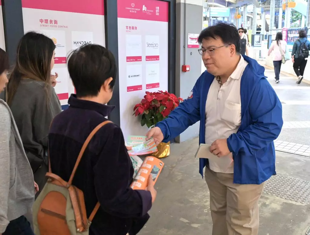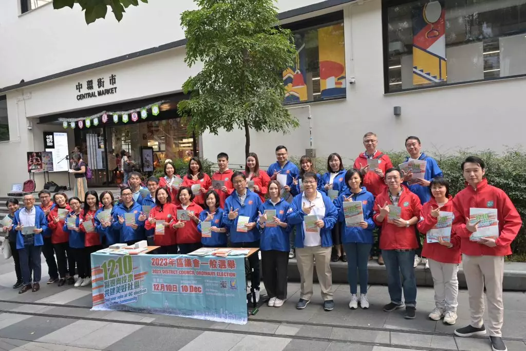 民青局局長麥美娟、常任秘書長林雪麗、民政事務總署署長張趙凱渝、青年專員陳瑞緯和副秘書長歐陽力,再度全家總動員出動,聯同民青局同事及民政總署義工隊,一起去到中環街市同附近行人天橋派發區議會選舉宣傳單張,呼籲咁多位街坊聽日齊盡公民責任,踴躍投票。