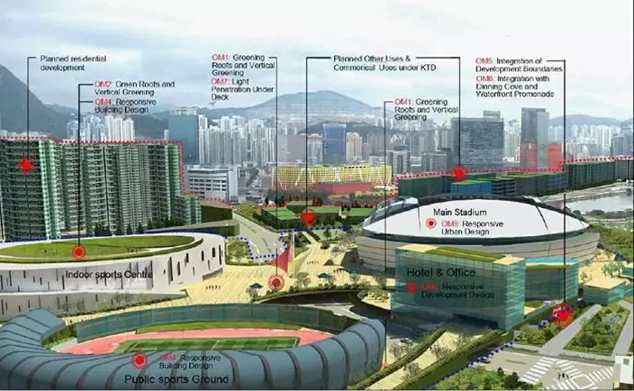 擬建的啟德體育園佔地28.2公頃,建築署表示工程會分階段進行,用海上運輸將預製組件直接送到工地。由於啟德體育園區包括一個5萬人主場館,一個5000人公眾運動場,當局早前更研究將容納7000人的室內體育館,加大至8000至1萬人;還有辦公大樓、酒店、零售餐飲和停車場,對周邊的交通、空氣和噪音影響,帶來一定滋擾。