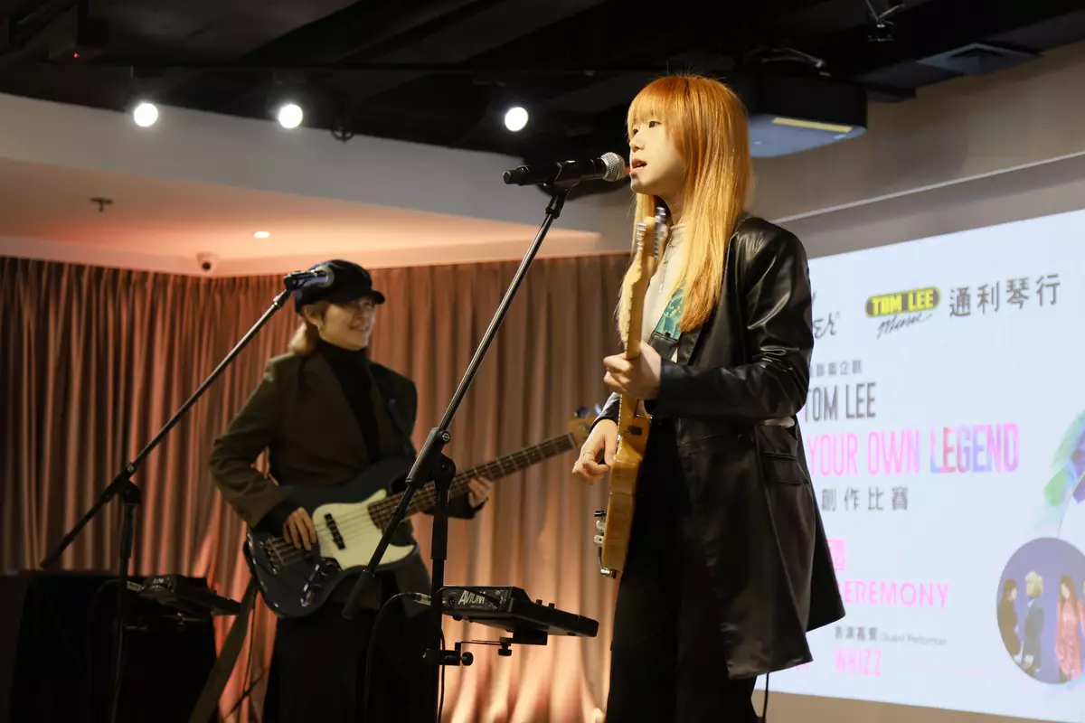國際知名結他品牌Fender和通利琴行聯合舉辦的「DESIGN YOUR OWN LEGEND結他圖案創作比賽」頒獎典禮,日前於尖沙咀通利琴行Tom Lee Studio圓滿結束。除了四位參與藝術家暨評判——著名藝術家又一山人(黃炳培)、樂隊RubberBand(RB)隊長兼結他手阿正(馮庭正)、香港Hip Hop始祖兼亞洲塗鴉教父MC仁(陳廣仁),和漫畫家兼多媒體創作人林祥焜,到場向優勝者頒發獎項之外,四人女子獨立樂隊WHIZZ(主音王雨山、低音吉他手Bowie及鼓手,吉他手Moo因病缺席)亦有以表演嘉賓身份在典禮亮相。