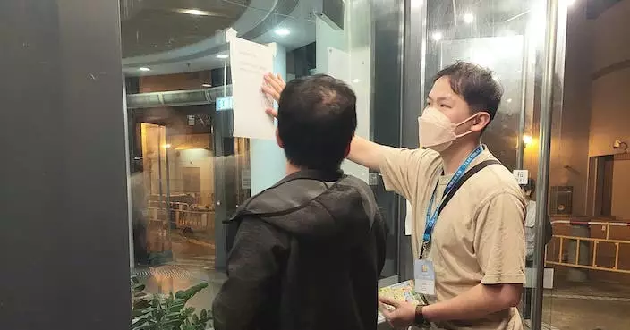 職員在票站外張貼延長投票時間的告示。 巴士的報記者攝