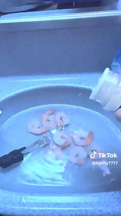 影片中,Barfly攜帶一袋冷凍蝦仁和薯蓉料理包到飛機艙內的廁所,隨後拿出通過安檢的電池和導熱裝置將洗手槽中的水加熱,再將煮熟的蝦仁調味,接著使用剩餘的熱水配合調理包做出一份薯蓉,最終完成了一道「蒜香蝦佐薯蓉」的料理。