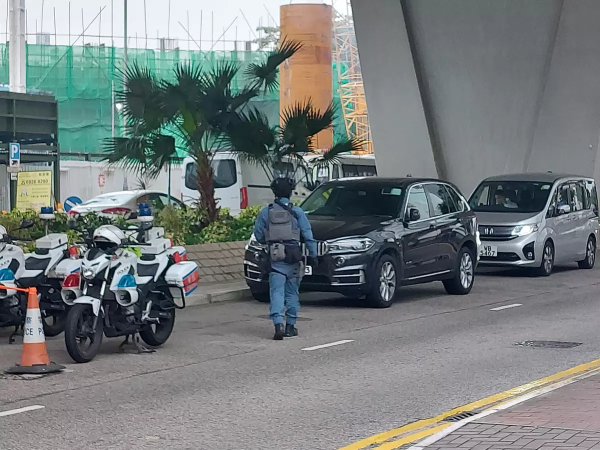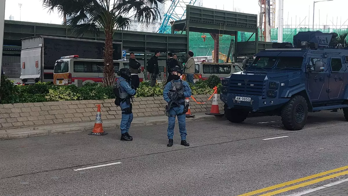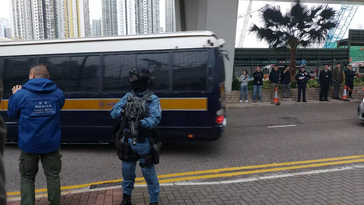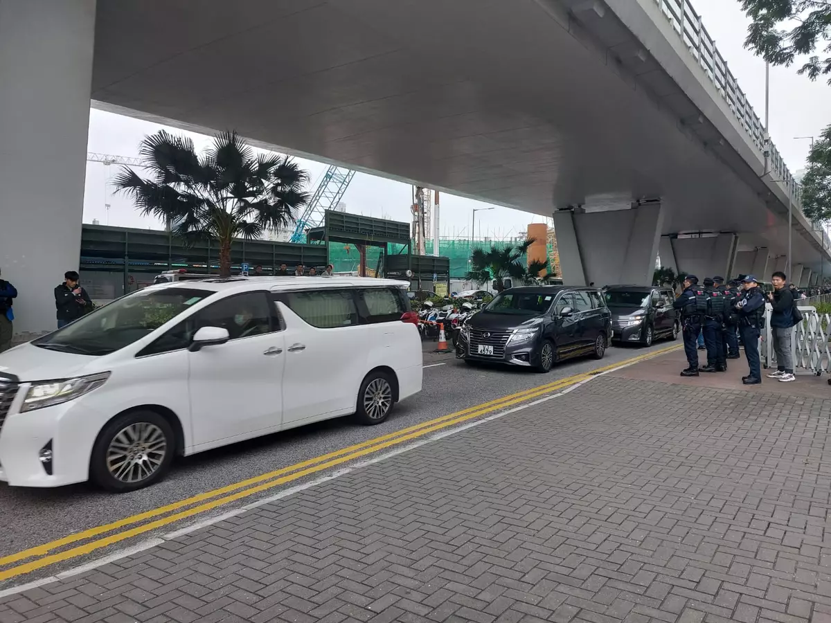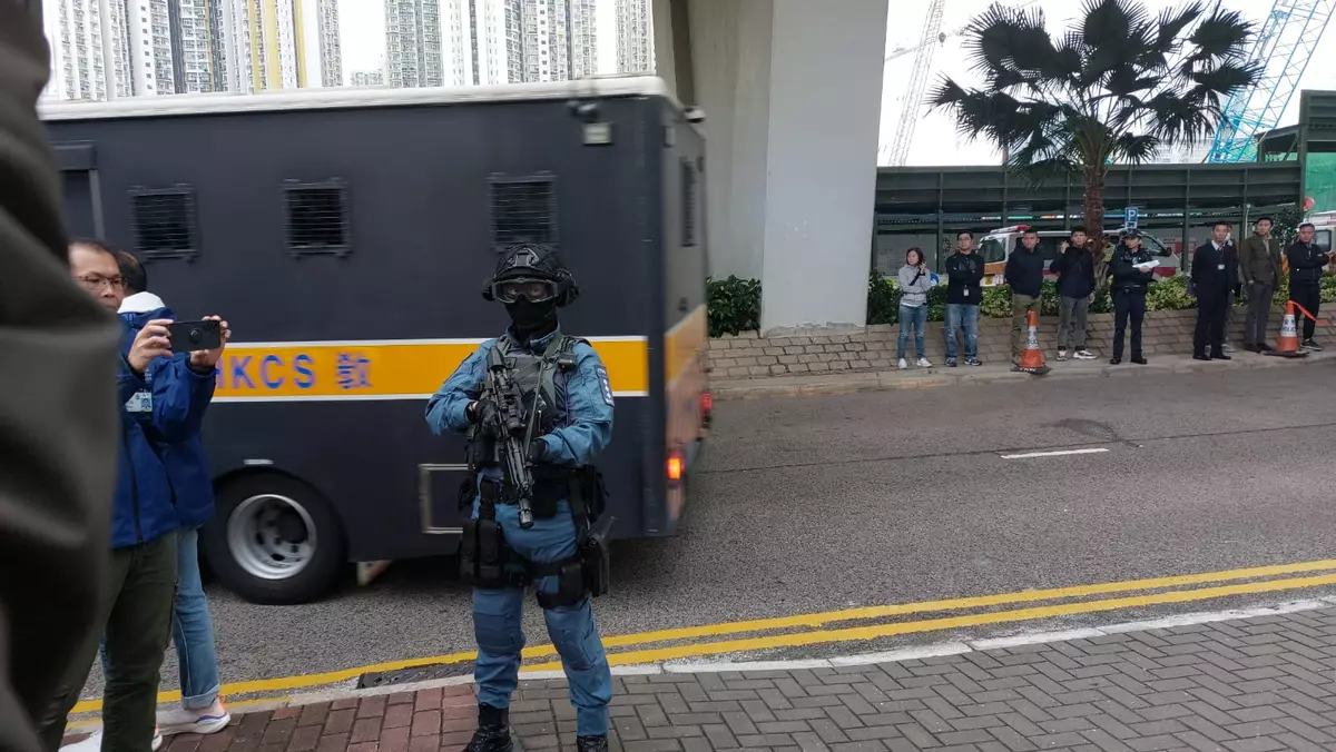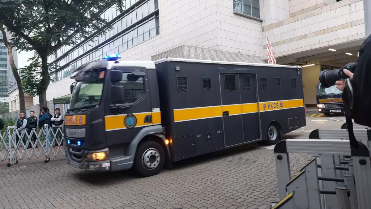 載有黎智英的囚車離開法院。《巴士的報》記者攝
